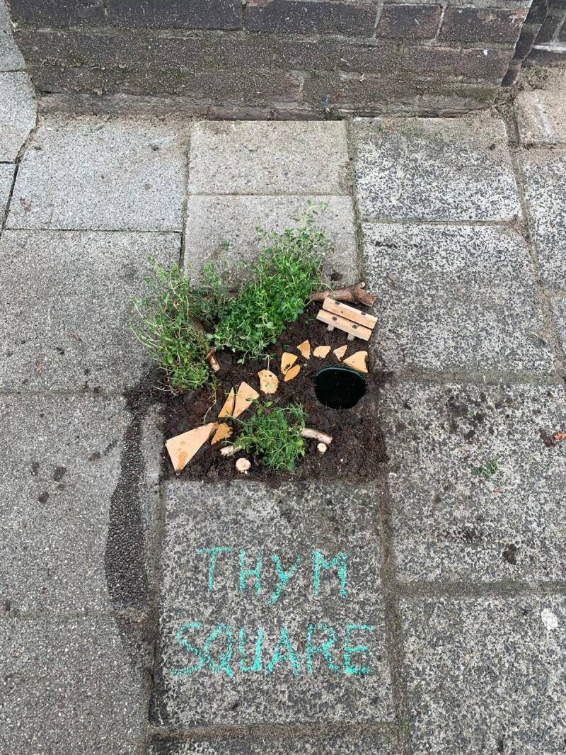 Ter ere van Thijmens geboortedag ontwerpen  Groenemorgen en Aanpact een voorbeeld-minituintje ter grootte van een stoeptegel.